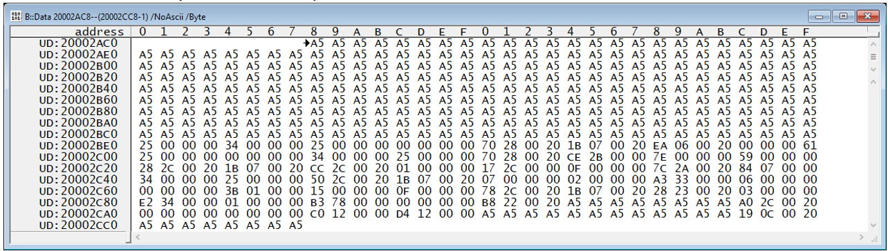 ). To determine stack usage, TRACE32 scans the memory within this range and compares its contents against a predefined fill pattern.